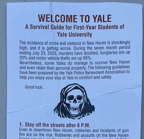 Yale University is rushing to reassure freshman students and parents after the school’s police union, which in the midst of contract negotiations, distributed flyers with stark warnings about high crime in New Haven, Connecticut — complete with a graphic of a grim reaper. They warned incoming students to avoid walking alone and avoid public transport. Forget night life: Student should stay in their dorms and “off the streets after 8 PM.”