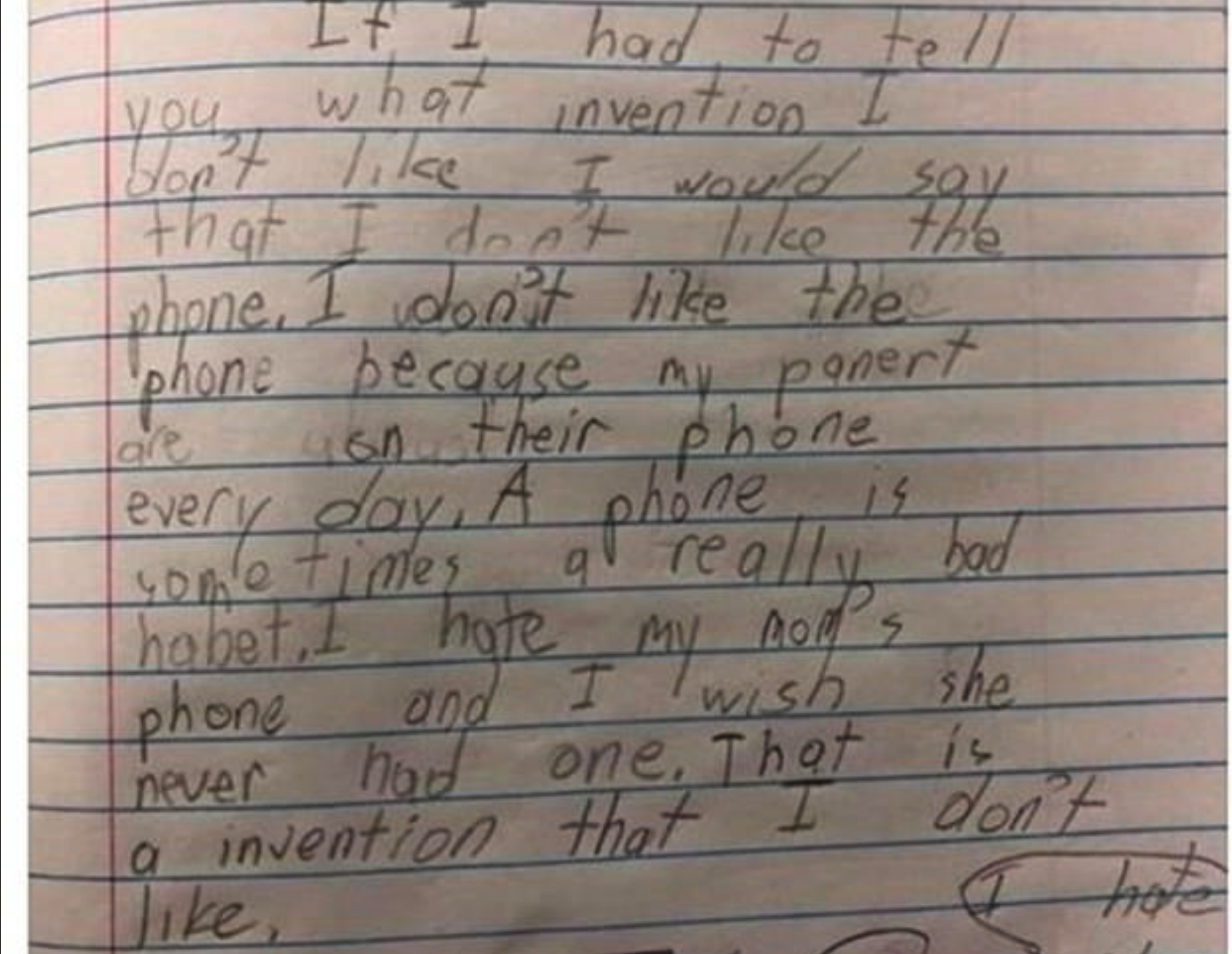 A teacher down in Louisiana recently had her 2nd grade students write about an invention that they wish had never been created, and what one little girl wrote about her mother’s cell phone is going viral all over social media. In fact, the post has already been shared over a quarter of a million times on Facebook. Teacher Jen Beason didn’t reveal the identity of the little girl, but she originally shared what she had written on Facebook to encourage parents to get off of their cell phones and to start spending more time with their children. As parents, we don’t always realize how much our children really do want to spend time with us. This is what the little girl wrote…