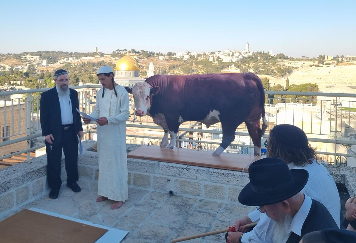 “Temple worshipers are now practicing the mitzvah [religious duty] of a red cow in front of the Temple Mount, which will enable the return of purity and the observance of all the temple mitzvahs,” posted journalist Yinon Magal on Tuesday, along with a picture of activists from the Temple Institute.