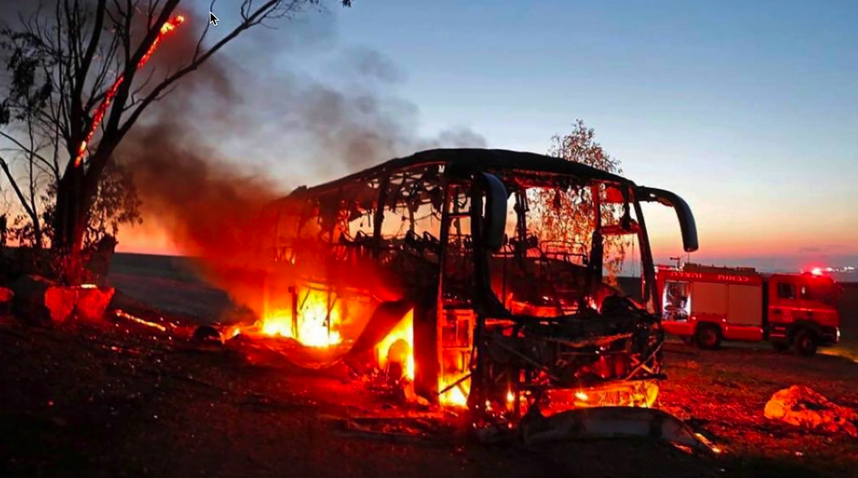 Hours after an Israeli bus was struck by Hamas mortar fire from Gaza, resulting in injuries, which was accompanied by a sustained exchange of fire involving 100 rockets and Iron Dome defense response fire, Israeli jets have bombed the studios of Hamas’s television station in the Gaza Strip.