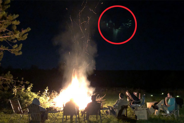 The anonymous believer was on a trip to Maiden Rock, in the US state of Wisconsin, last week when they decided to take a snap of the group sat around the large camp fire.