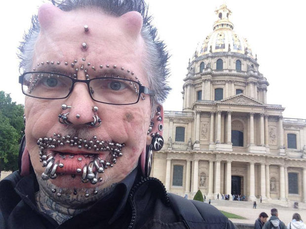 A heavily tattooed German man whose face is embellished with horn implants and more than 100 piercings said Sunday he was refused entry to Dubai without reason, forcing him to skip a planned appearance at a nightclub.