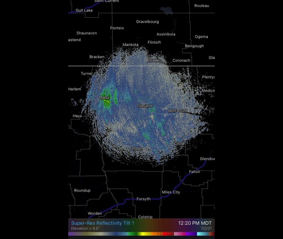 The National Weather Service (NWS) Glasgow says the radar is lighting up, but not with rain.