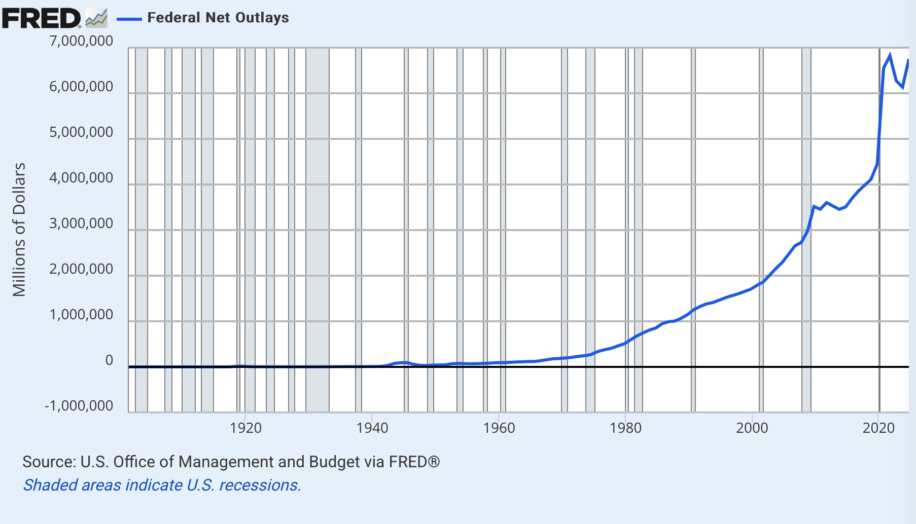 1 – Government spending is expanding at an exponential rate. As you can see from the chart below, federal spending is now roughly 14 times higher than it was back in 1980. And federal spending is about three trillion dollars higher per year than it was during the last full year before the pandemic. Once the pandemic subsided, federal spending went down a bit, but now it is starting to rise at an exponential rate once again…