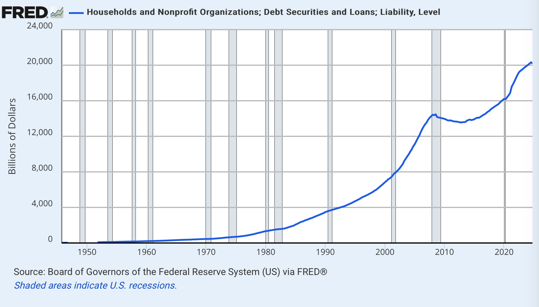 4 – Household debt has soared to almost unbelievable levels over the last 30 years. The sad truth is that it is not just the U.S. government that has a massive debt problem. U.S. households have also been accumulating debt at a staggering rate. Total household and nonprofit organization debt did not pass the 2 trillion dollar mark until the mid-1980s, but now total U.S. household and nonprofit organization debt has surpassed the 20 trillion dollar mark. Household debt alone accounts for approximately 18 trillion dollars of this total…