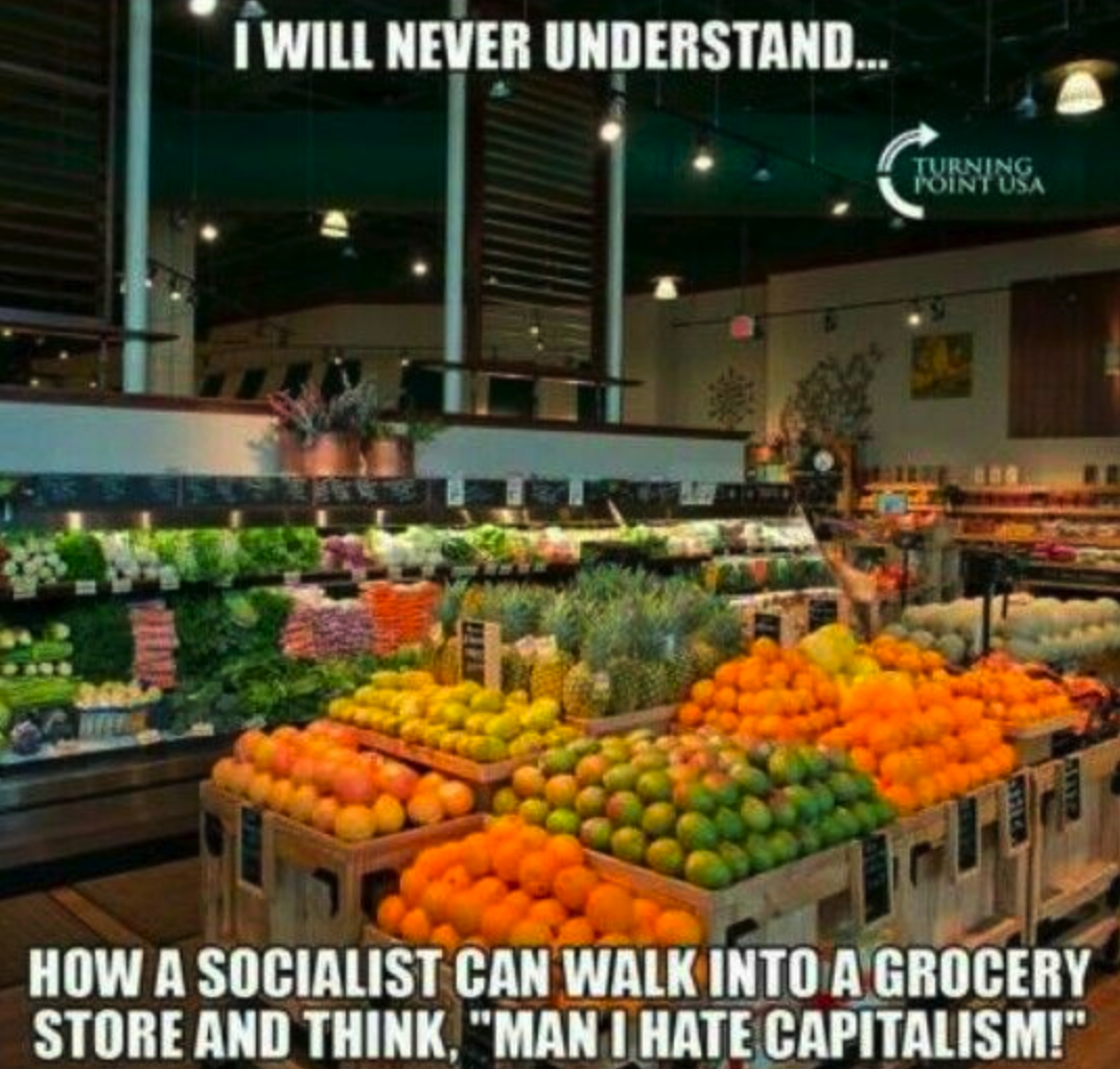 I Will Never Understand How A Socialist Can Walk Into A Grocery Store And Think, “Man I Hate Capitalism!” July 22, 2018 This meme which originally comes from Turning Point USA is presented with no further comment…