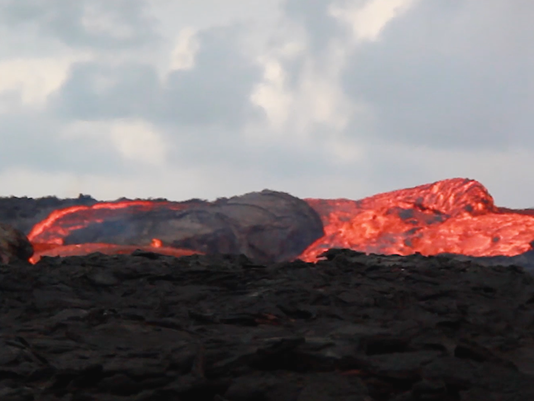 Lava flowing out a part of the Kilauea volcano in Hawaii is creating rapids as it joins a larger river of lava.