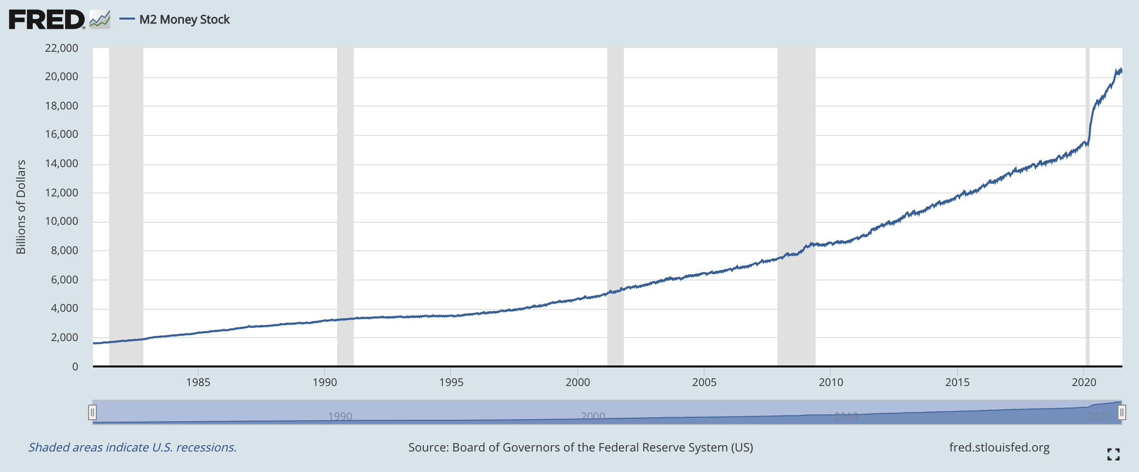 Collectively, our politicians and the Federal Reserve have pushed the size of our money supply to dizzying heights. Just before the pandemic, M2 was sitting at about 15 trillion dollars, and now it has crossed the 20 trillion dollar threshold.