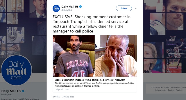 EXCLUSIVE: Shocking moment customer in ‘Impeach Trump’ shirt is denied service at restaurant while a fellow diner tells the manager to call police https://t.co/zdFIVns22o