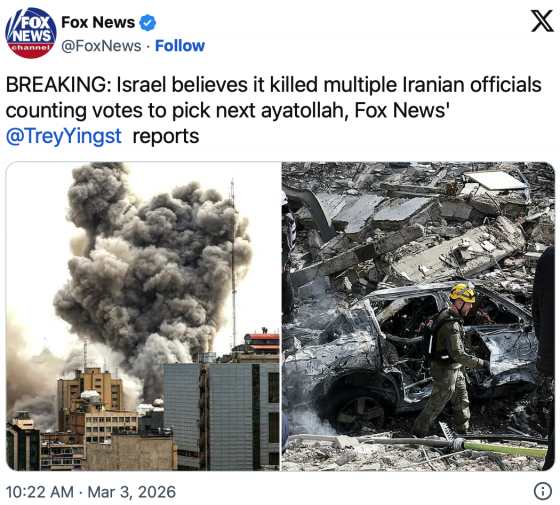 The attack came as the powerful regime body was counting votes, hoping to select a supreme leader to replace Ali Khamenei after his death during the opening salvo of the U.S.-Israeli operation against the Iranian regime. The assembly claimed just hours earlier that it “won’t take long” to select a successor, though that process is likely at a standstill in the wake of Israel’s operation. While it remains unclear how many Iranian leaders were in the building and how many regime officials the strike killed, Fox News reported that “multiple Iranian officials responsible for counting the votes of the Supreme Council were killed,” while Israeli journalist Amit Segal said “the council secretary was killed and the ballot box was burned” in the strike.