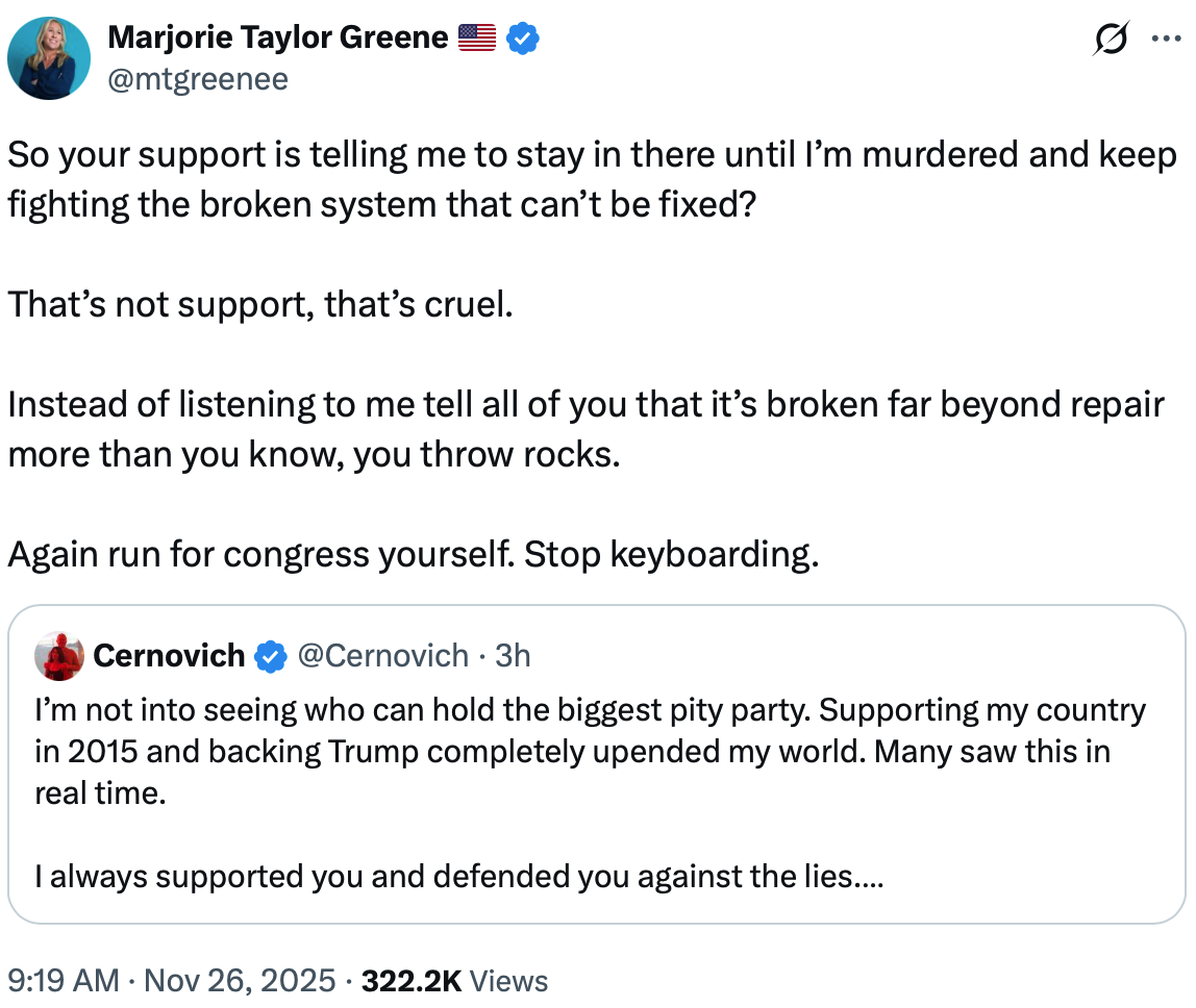 Once she took a very strong stand on the Epstein files, she put herself in great danger.