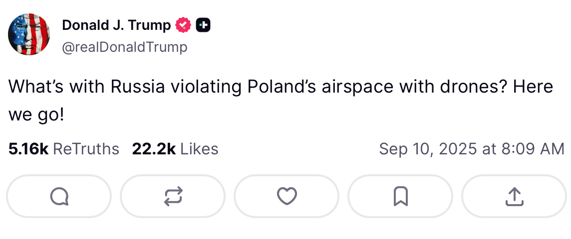 Following the drone incident in Poland, President Trump posted a very ominous message on his Truth Social account…
