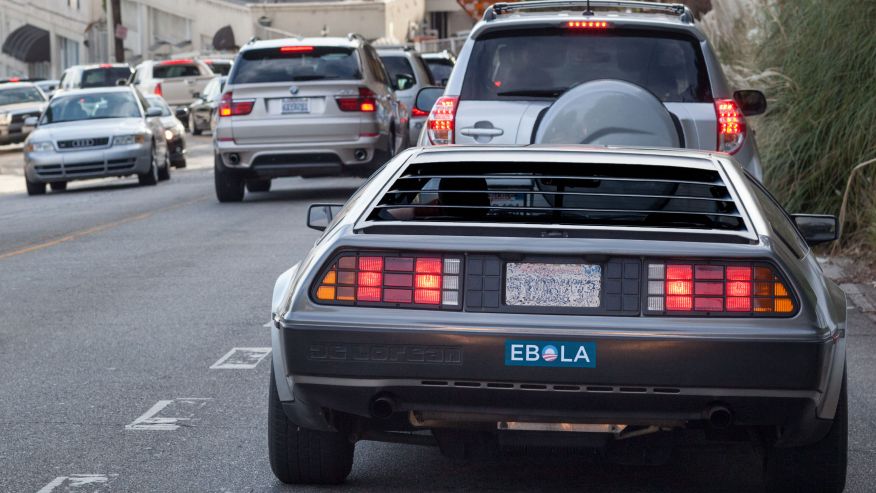 Vice President Joe Biden held up traffic around Los Angeles for a second day on Tuesday, but it was President Obama himself on the minds of many Southern California drivers as bumper stickers began appearing on area cars featuring the word Ebola with the Obama logo replacing the letter “o.”