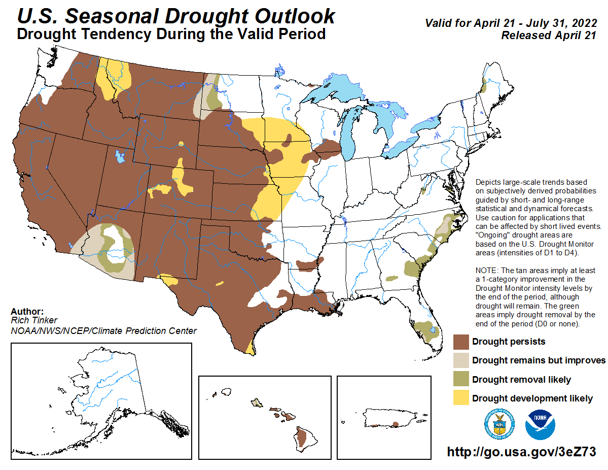 Are you ready for more bad news about our food supply? In recent weeks, I have extensively covered a confluence of factors which are combining to create a global food crisis of immense size and scope. But one thing that I haven’t written much about lately is the extraordinary drought in the western half of the United States. According to the official U.S. Seasonal Drought Outlook that was just released by the National Weather Service, nearly 50 percent of the continental United States will either see drought conditions persist or intensify in the coming months. This is really troubling news, because drought conditions are already having a dramatic impact on agricultural production.