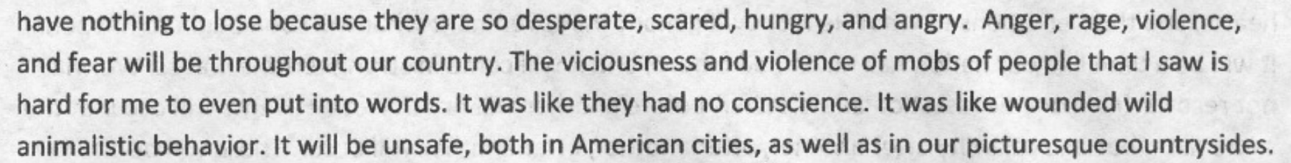 Because according to Sonja, what we have experienced so far is nothing compared to what is coming. In fact, in her letter she stated that the viciousness and violence that she witnessed in her visions “is hard for me to even put into words”…