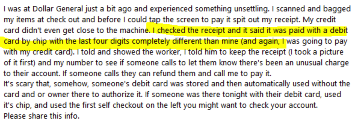 In some cases victims are actually being charged for goods that someone else is trying to purchase. Just check out the following example which was recently posted on Facebook…