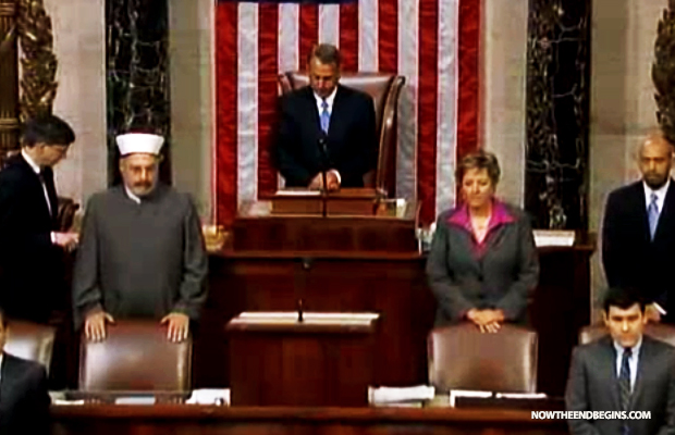 Years from now, when people look back on America, historians will write endless amounts of books and papers on the precise time when America gave into the relentless creeping Sharia and our democratic republic was destroyed. That time is now…right now. Historians will be very careful to note that our nation was not destroyed from outside forces, but was betrayed from forces within, namely our elected leaders. On November 13, 2014, U.S. Rep. Rush Holt and House Leader John Boehner invited Imam Hamad Ahmad Chebli, religious leader of the Islamic Society of Central Jersey (ISCJ) in Monmouth Junction, to give the opening prayer in the House of Representatives. The opening prayer asked for the “blessings” of Allah “the most merciful” to fall upon America. Boy, talk about inviting a curse! You could expect this nonsense if it was Harry Reid or Nancy Pelosi, but this was done by the hands of Republicans.