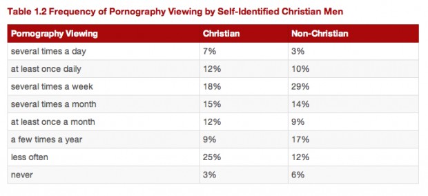 Additionally, 3 percent of non-Christian men say that they look at smut several times a day compared to 7 percent of Christian men.
