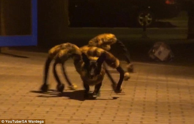 So it’s not surprising that this pooch caused quite a stir when she was let loose disguised as a terrifying eight-legged beast.