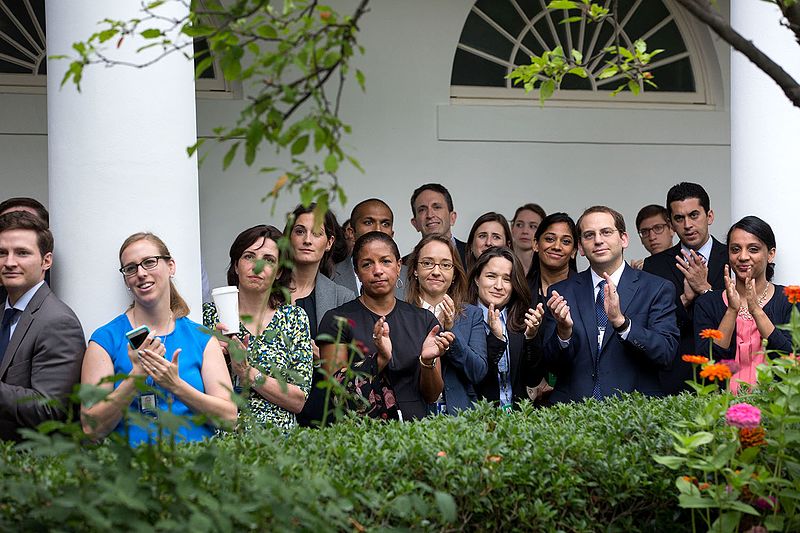 When it’s their turn, the White House staffers enter for a few private moments with President Barack Obama, a photo and a farewell hug from the boss.