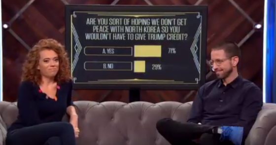 A live TV poll taken on Michelle Wolf’s Netflix show found that 71% of the comedian’s liberal audience would rather peace with North Korea fail than see Donald Trump take credit for it.