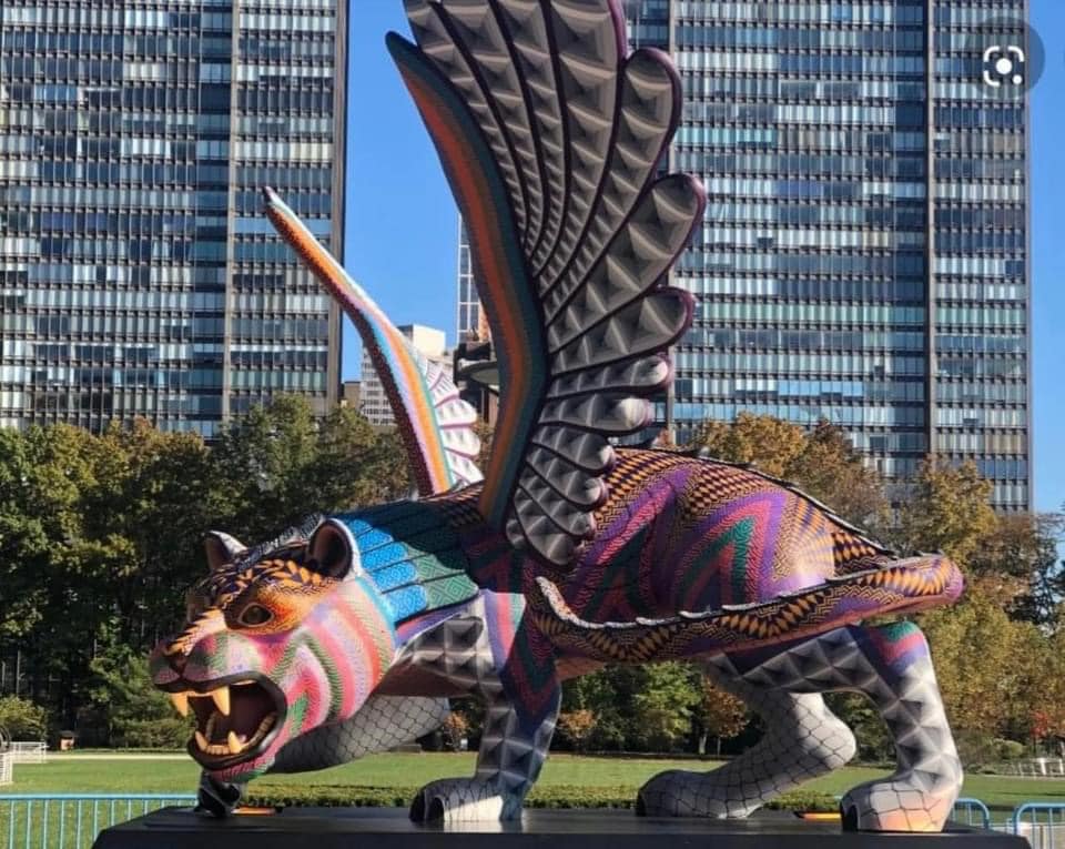 A guardian for international peace and security sits on the Visitor’s Plaza outside #UN Headquarters. The guardian is a fusion of jaguar and eagle and donated by the Government of Oaxaca, Mexico @MexOnu. It is created by artists Jacobo and Maria Angeles.