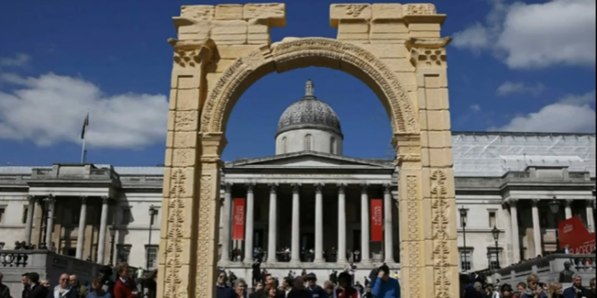 The original Roman Victory Arch stood for 1,800 years in Palmyra, Syria, until it was destroyed by ISIS in October 2015. A full-size 28-meter tall replica of the arch was created last year by the Institute for Digital Archeology, a joint project of Oxford and Harvard universities, and has been displayed twice before.