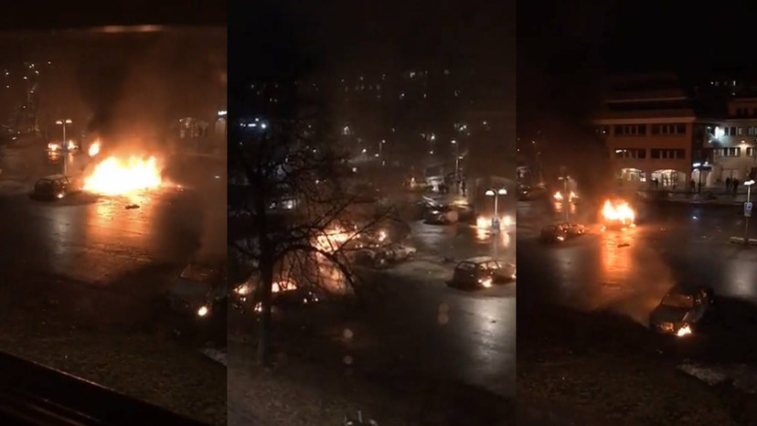 The unrest in the district continues during the evening and posted as assaulting a police officer and rioting. Quarter to ten notifies police that at least one car on fire.