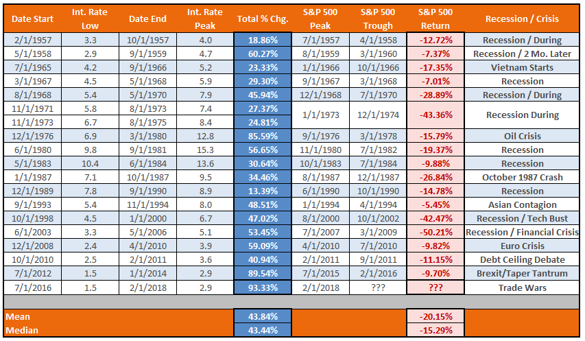 It was economist Lance Roberts that pointed out this correlation between rate hiking cycles and economic troubles. When I came across his most recent article, it really got my attention…