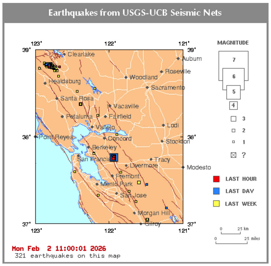 According to the Southern California Earthquake Data Center, there have been 321 earthquakes in the San Francisco area in the last 7 days. The following is a screenshot…