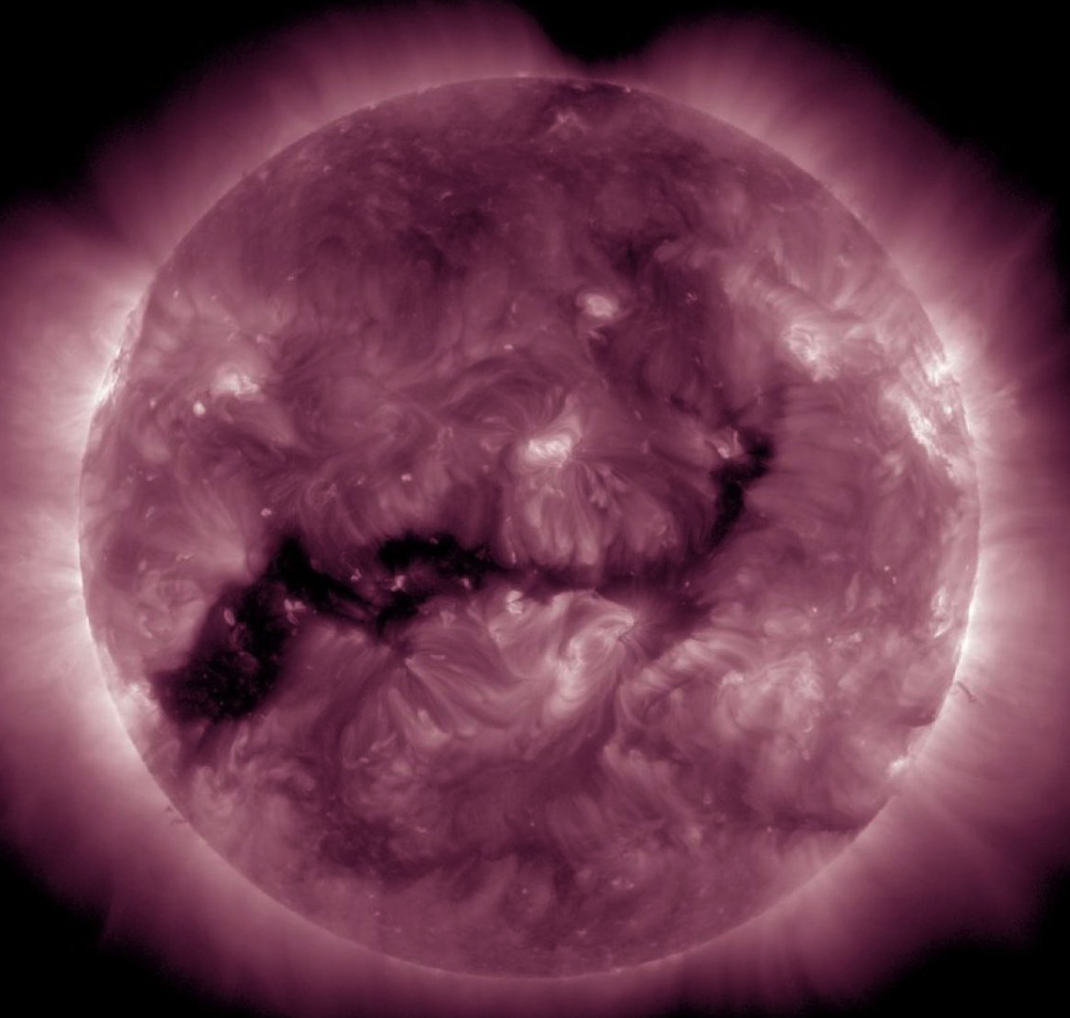 A huge coronal hole spanning 1/4 of the circumference of the Sun is opening, allowing unusually fast solar winds to head towards Earth, #NASA announces.