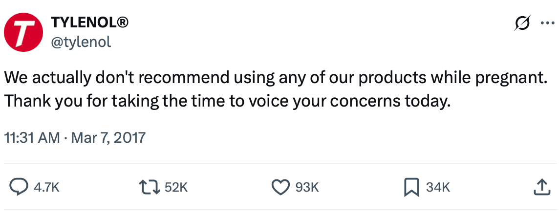 The company that makes Tylenol has publicly stated that they do not recommend taking it while women are pregnant…