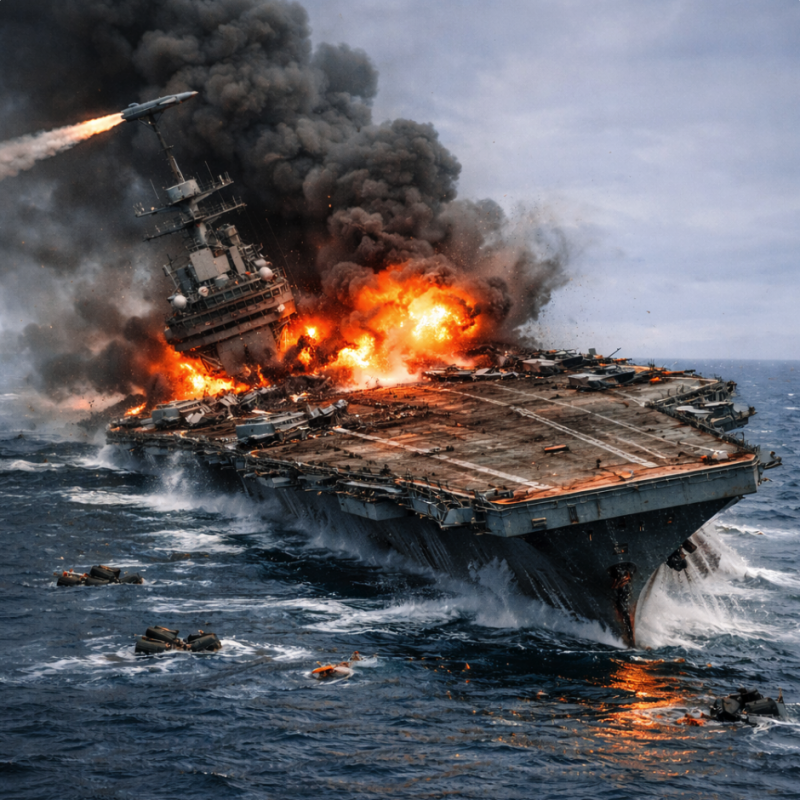 Nobody can deny that Iranian leaders have been thinking about sinking a carrier. On Sunday, they unveiled a giant billboard in Enghelab Square that conveys quite an ominous message…