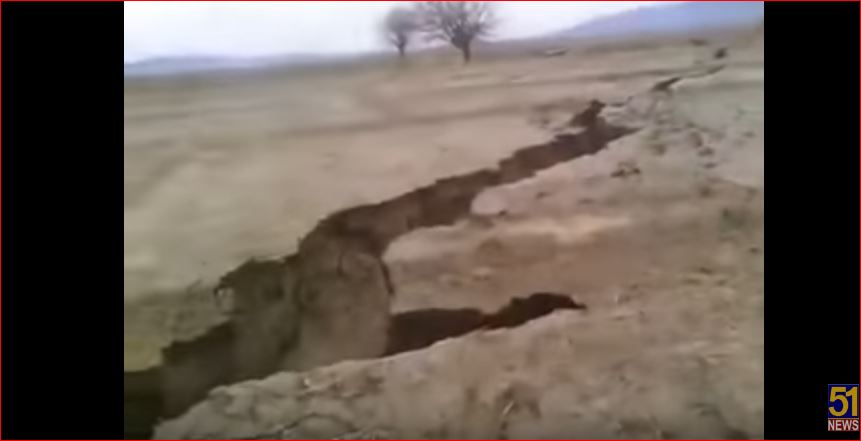 A gigantic earth fissure opened up in Qila Abdullah following the recent downpours in Balochistan, Pakistan.