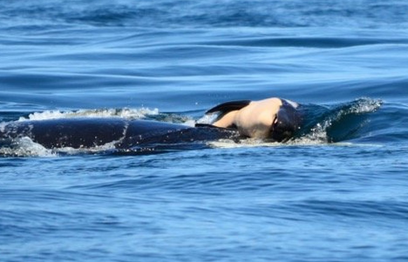 J35, or Tahlequah, gave birth the morning of July 24 to the calf, which lived for only one half-hour. She has refused to let go of it ever since, carrying the infant either by one fin, or pushing it through the water on her head.