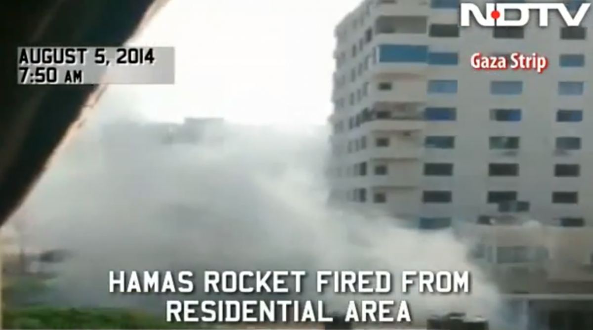 Sreenivasan Jain and NDTV filmed suspected Hamas members assembling the rocket launch site beneath a tent in the middle of a residential neighborhood. The launch site was placed within feet of hotels and apartment blocks in a crowded residential area.