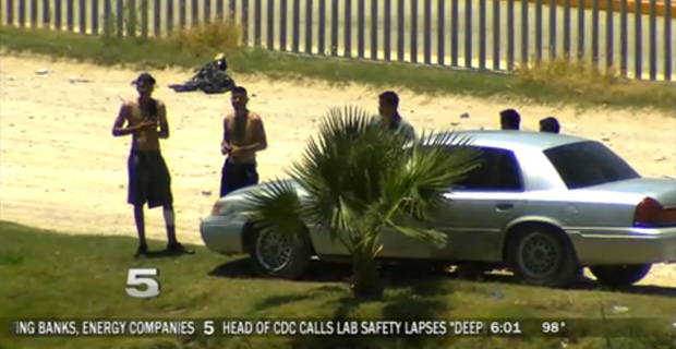 Dozen of vehicles circled the river bank on the Mexican side all day. Many of the vehicles had Texas license plates.