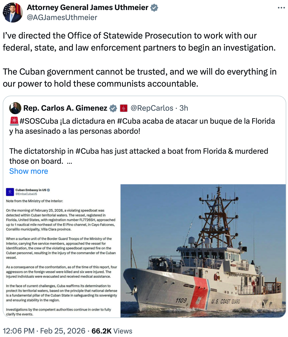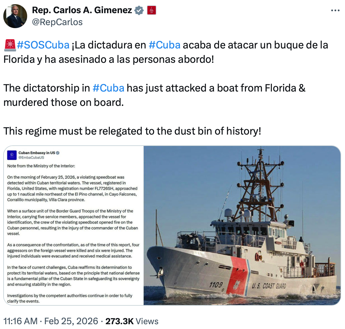 “In the face of current challenges, Cuba reaffirms its determination to protect its territorial waters, based on the principle that national defense is a fundamental pillar of the Cuban State in safeguarding its sovereignty and ensuring stability in the region,” Cuban authorities said. “Investigations by the competent authorities continue in order to fully clarify the events.”