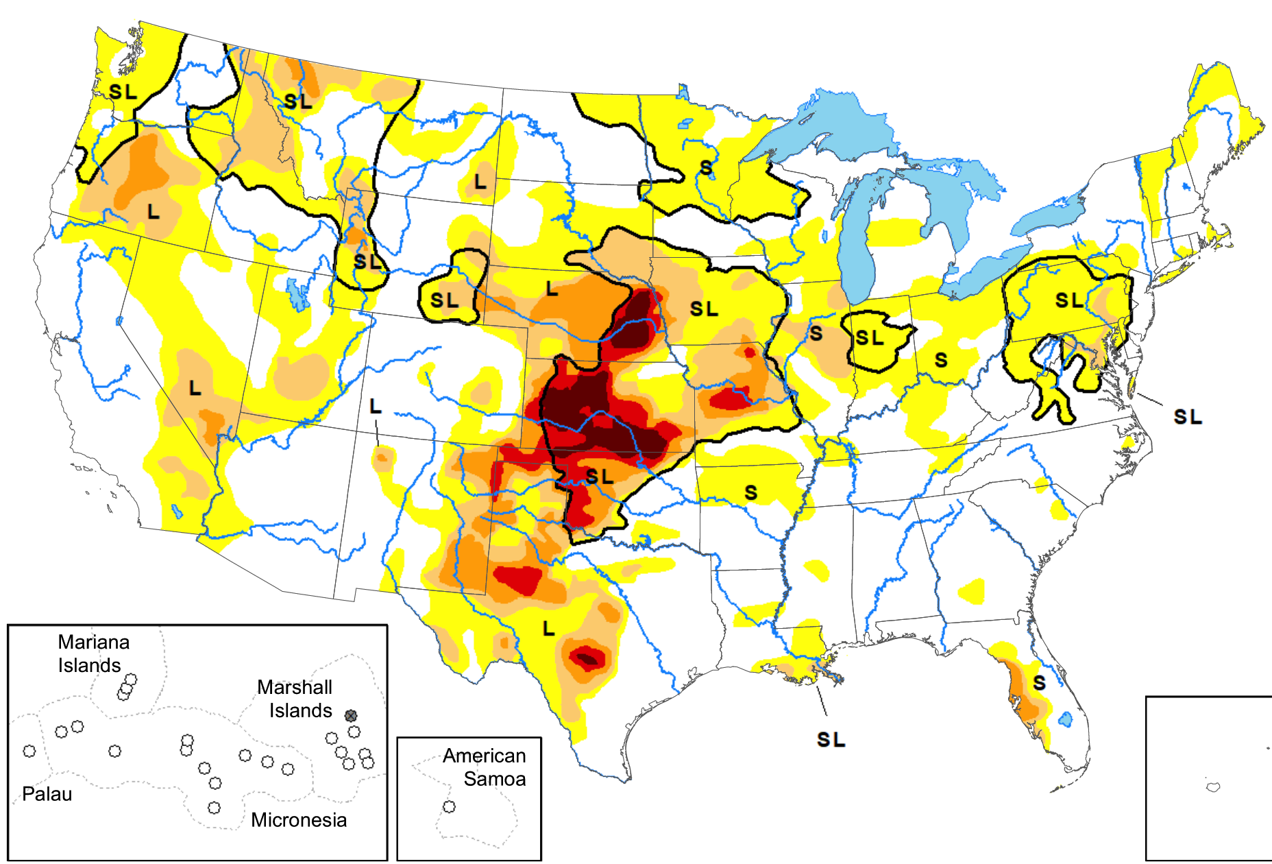 The USDA’s National Agricultural Statistics Service recently reported increasingly dry topsoil, poor pasture conditions in Missouri, and limited moisture for newly planted crops.
