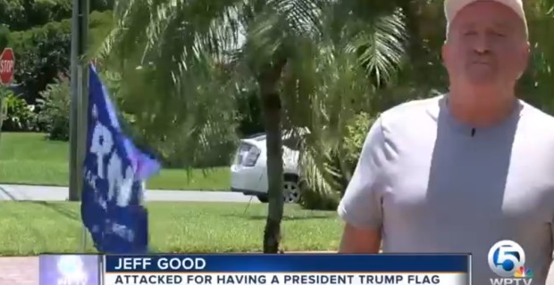 An older man with gray hair and his female companion drove up and began yelling about President Trump and demanding Good remove the Trump flag from his yard.