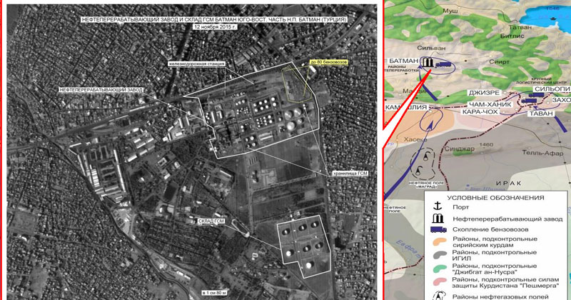 “The western route goes to Turkish ports on the Mediterranean coast, the north—to the refinery Batman in Turkey and the east—to the largest transshipment base in the village of Cizre,” the Russian Ministery of Defense web page states.