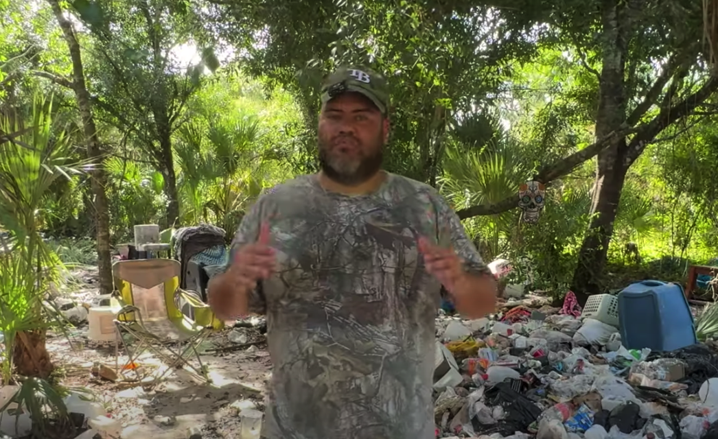 Way back in the woods in southwest Florida, trails that have been made out of discarded carpets lead to absolutely enormous homeless encampments where hordes of homeless people have made homes for themselves.