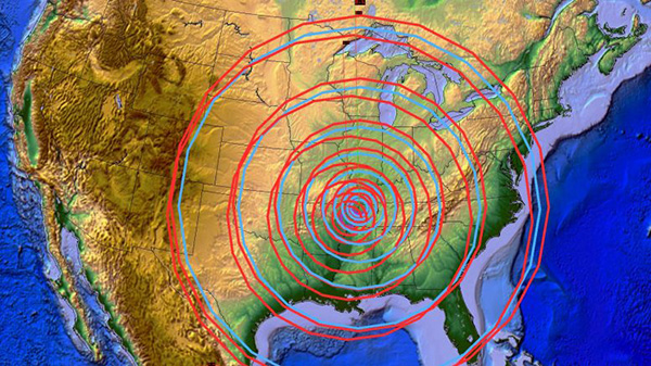 Then, all of a sudden, while waiting for this earthquake to happen, I had a vision within the dream. I saw an outline map of America. I didn’t see the state lines, but only the outline of the U.S. Then, the map zoomed to where the earthquake started and I saw a black dot pulsating on the epicenter. The dot was in the upper part of the middle of the country, however, I wasn’t sure of which state. It seemed higher than the New Madrid fault. Then I saw ‘9.5’ indicating the level on the Richter Scale. I was not given any dates or timing.