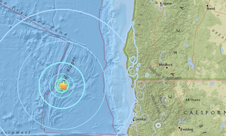 The quakes, on average, were clustered about 126 miles west of Crescent City, California.