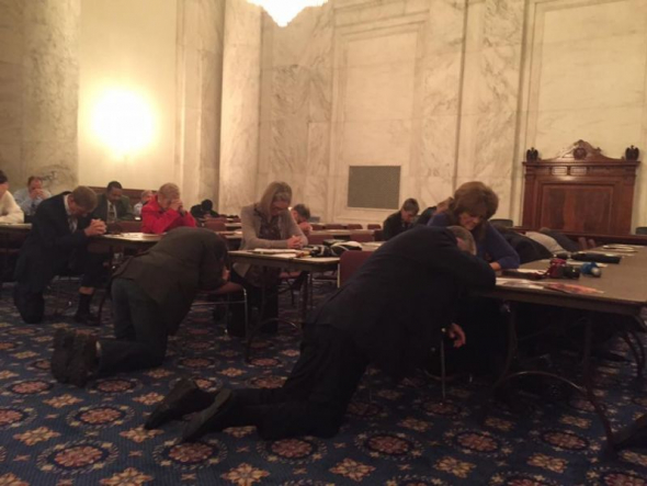 The prayer meeting was part of the “Congressional-Clergy Town Hall” organized by Wallbuilders and the Jefferson Gathering, according to Right Wing Watch.