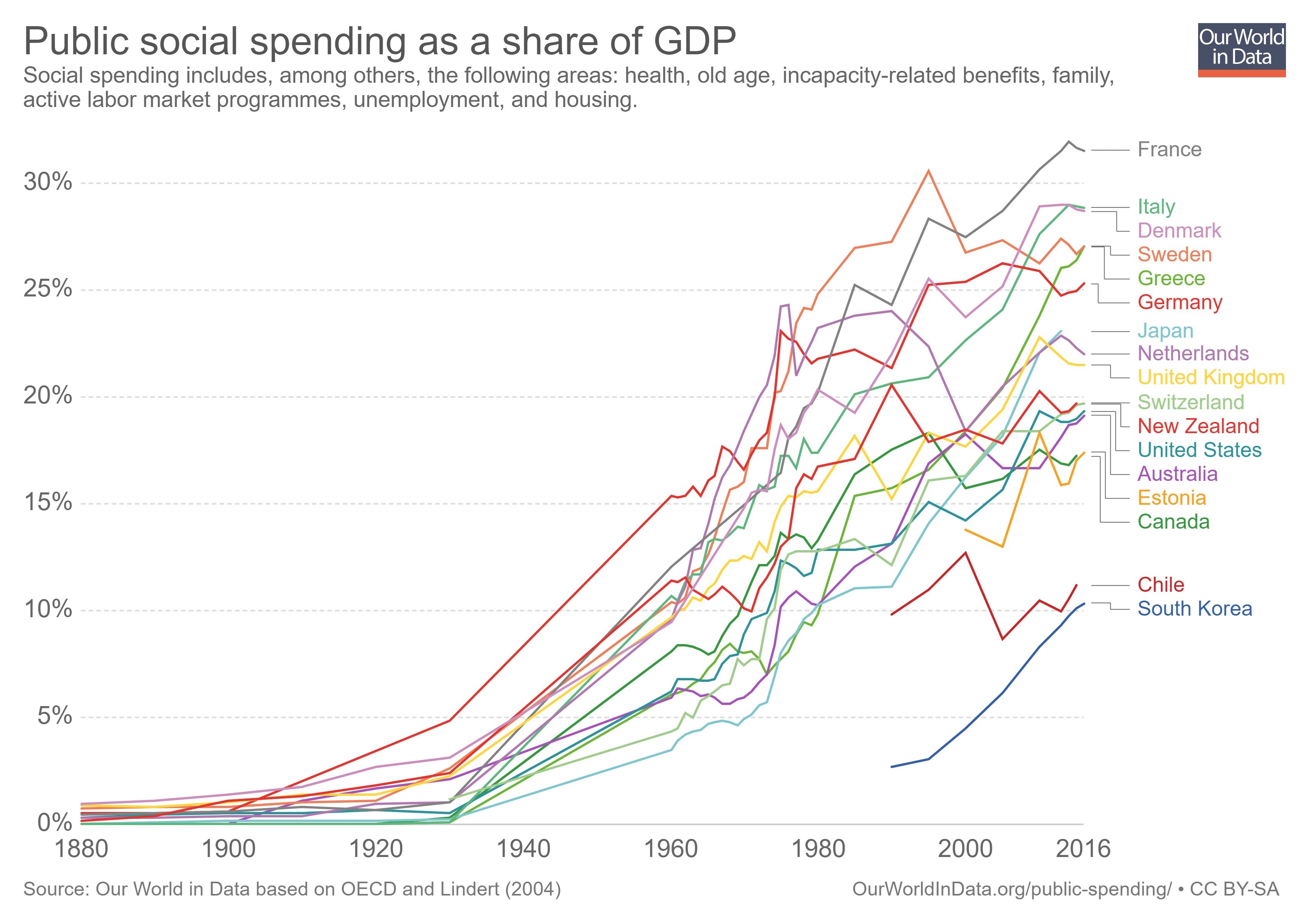 Even as recently as 1960, welfare states were very small compared to their current size. Indeed, redistribution spending in Western nations averaged only about 10 percent of economic output, about half the size of today’s supposedly miserly American welfare state.