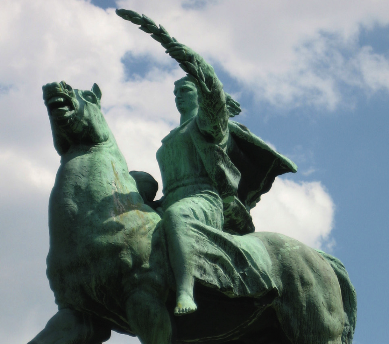 The fact that the rider in Revelation chapter 2 seems to be male and the rider on the “Peace Monument” is female would appear to rule out any link at first glance.
