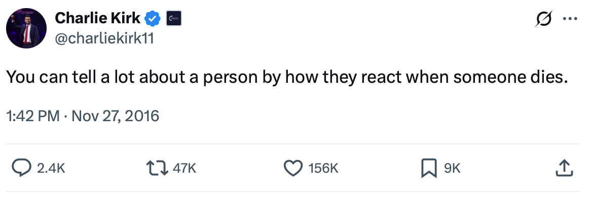 There are a couple of other old Charlie Kirk tweets that I wanted to share with you.