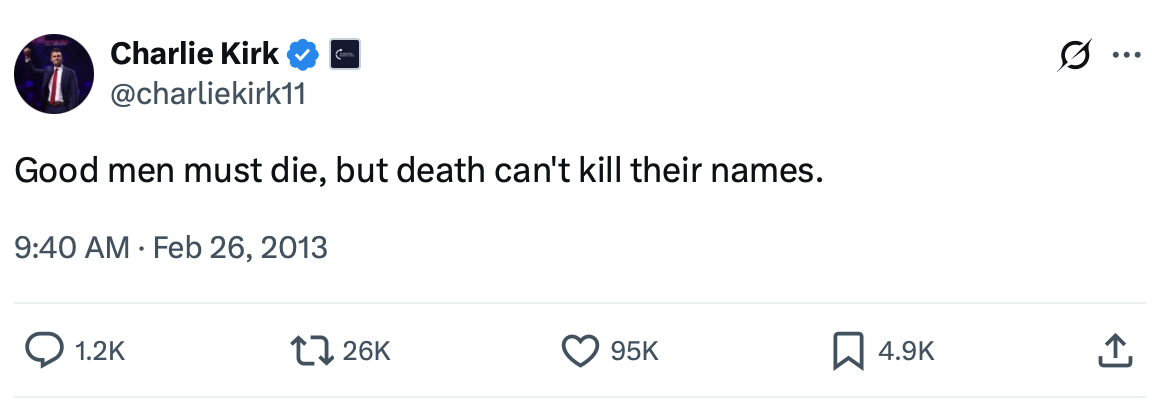 Charlie Kirk was a good man, and he will not be forgotten.