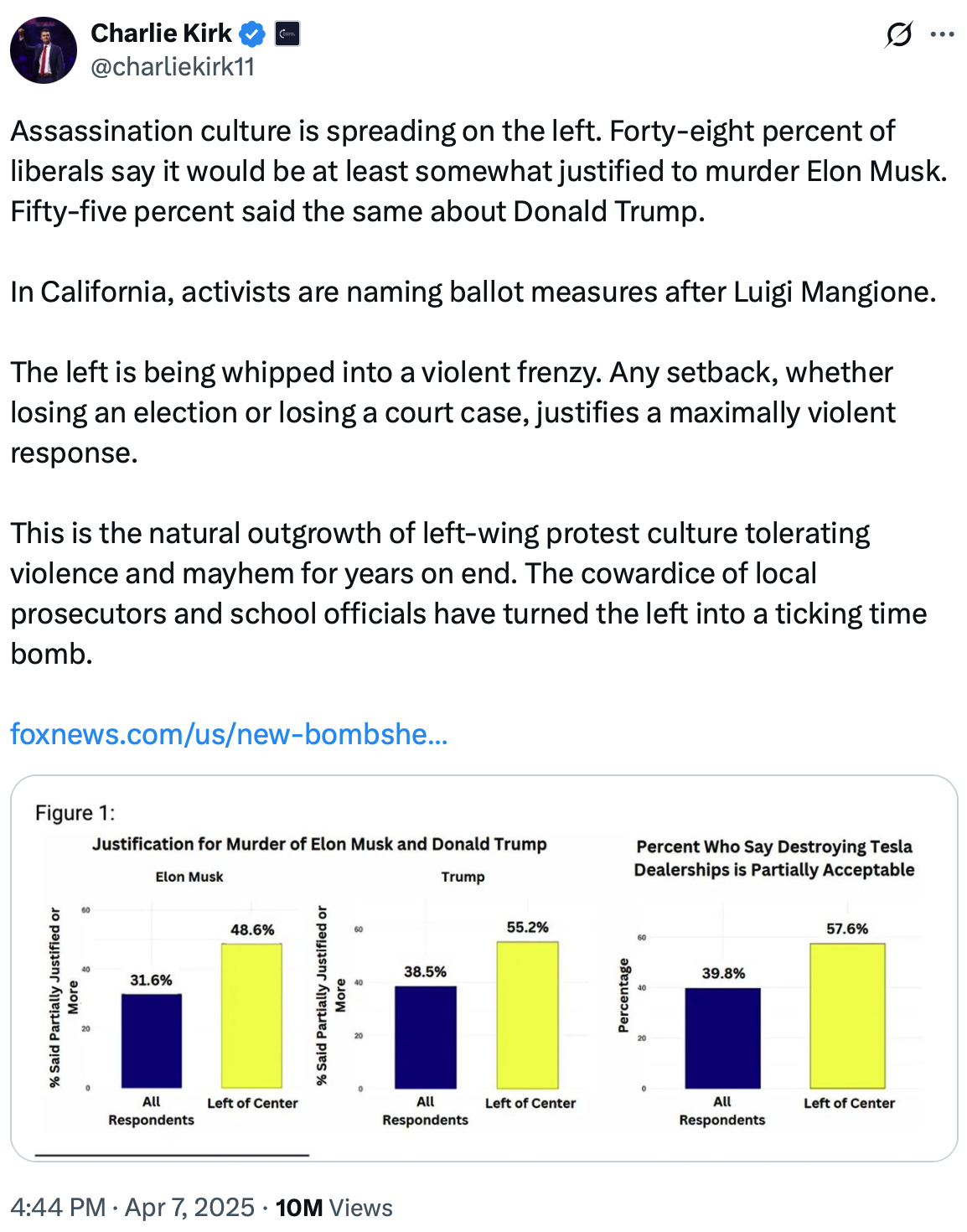 On April 7th of this year, Charlie Kirk drove this point home in a tweet in which he warned that “assassination culture is spreading on the left”…